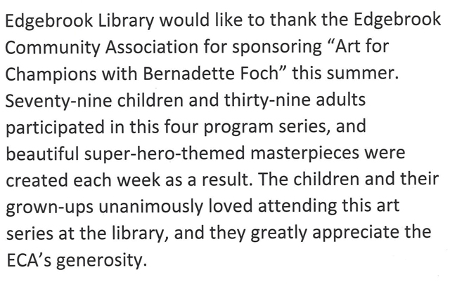 Without your support, the 2017 Summer Reading Club would have been a poorer experience for our neighbors. Thanks, ECA members, for encouraging learning and discovery.